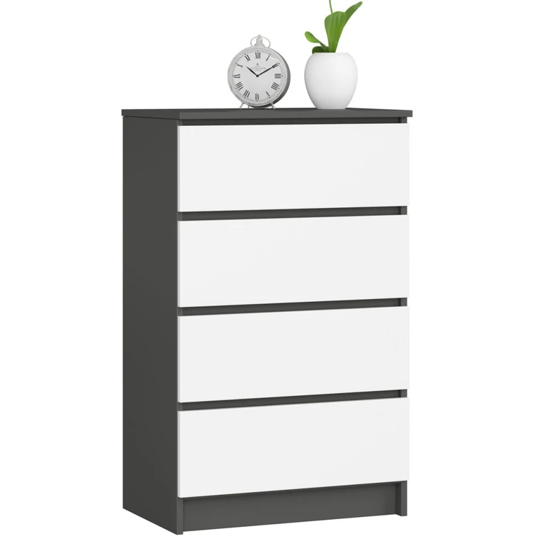 Jednoduchá a moderná komoda. Je vyrobená z pevnej laminovanej dosky, ktorá je odolná proti oderu a poškodeniu. Univerzálny vzhľad splní očakávania každého, kto ocení kombináciu jednoduchosti a elegancie. Bezúchytkové čelá zásuviek zaisťujú pohodlné používanie.