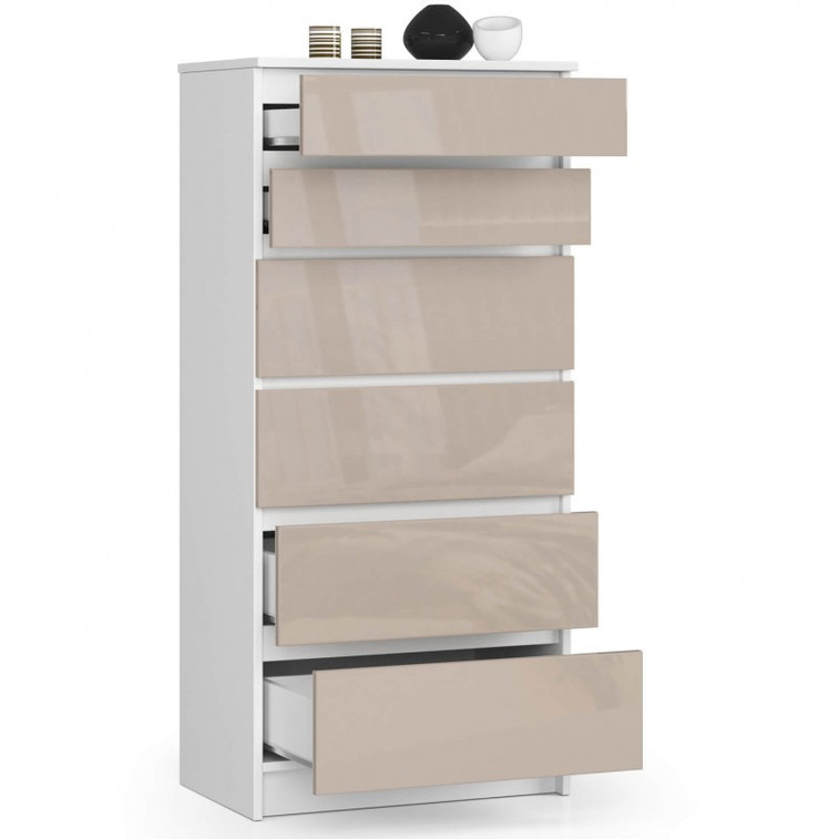 Komoda má moderný vzhľad a vďaka 6 zásuvkám do nej uskladníte veľké množstvo vecí ako je oblečenie, hračky pre deti alebo náradie. Skvele pasuje do domácnosti, ale svoje miesto nájde aj v pracovných podmienkach.