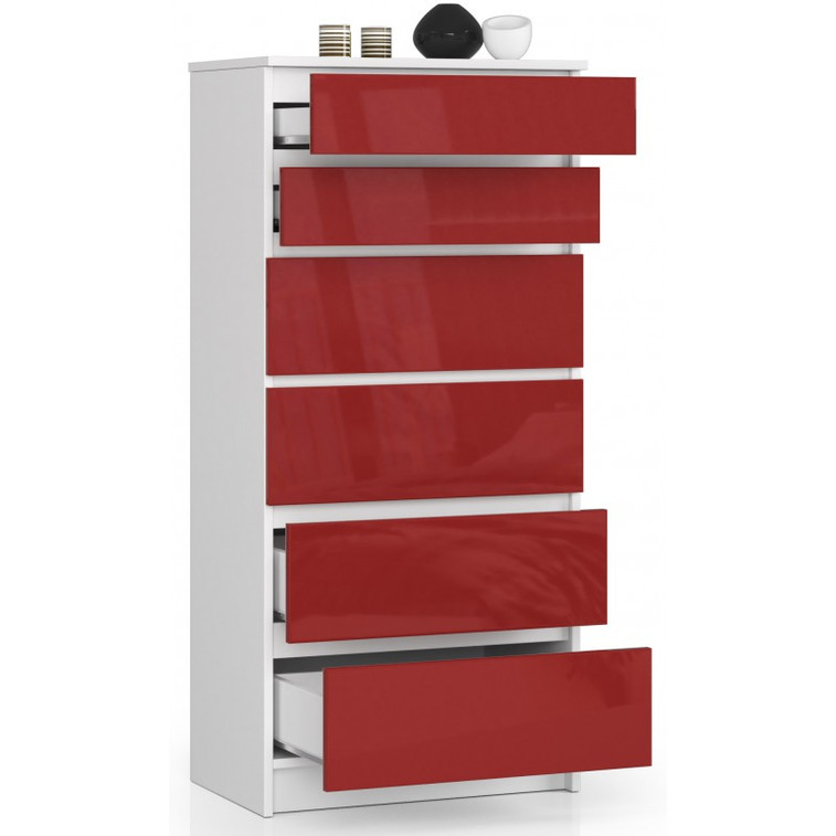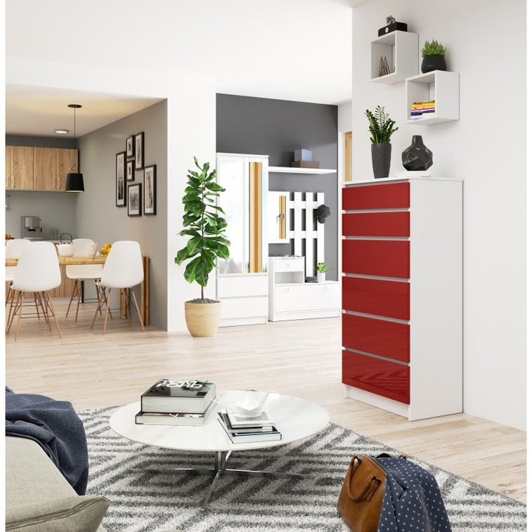Komoda má moderný vzhľad a vďaka 6 zásuvkám do nej uskladníte veľké množstvo vecí ako je oblečenie, hračky pre deti alebo náradie. Skvele pasuje do domácnosti, ale svoje miesto nájde aj v pracovných podmienkach.