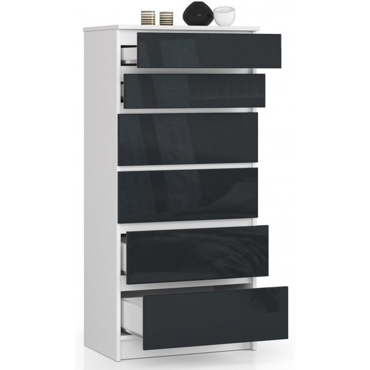 Komoda má moderný vzhľad a vďaka 6 zásuvkám do nej uskladníte veľké množstvo vecí ako je oblečenie, hračky pre deti alebo náradie. Skvele pasuje do domácnosti, ale svoje miesto nájde aj v pracovných podmienkach.