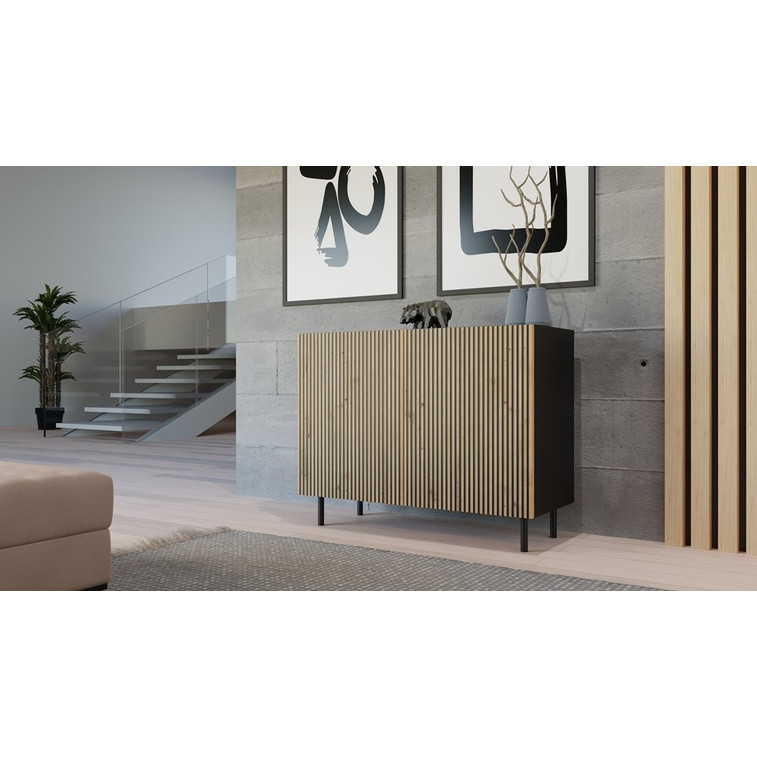 Moderná a štýlová komoda Kama je funkčná a priestranná. Hitom a novinkou sú drážkované čelá dverí, ktoré sú veľmi žiadané.