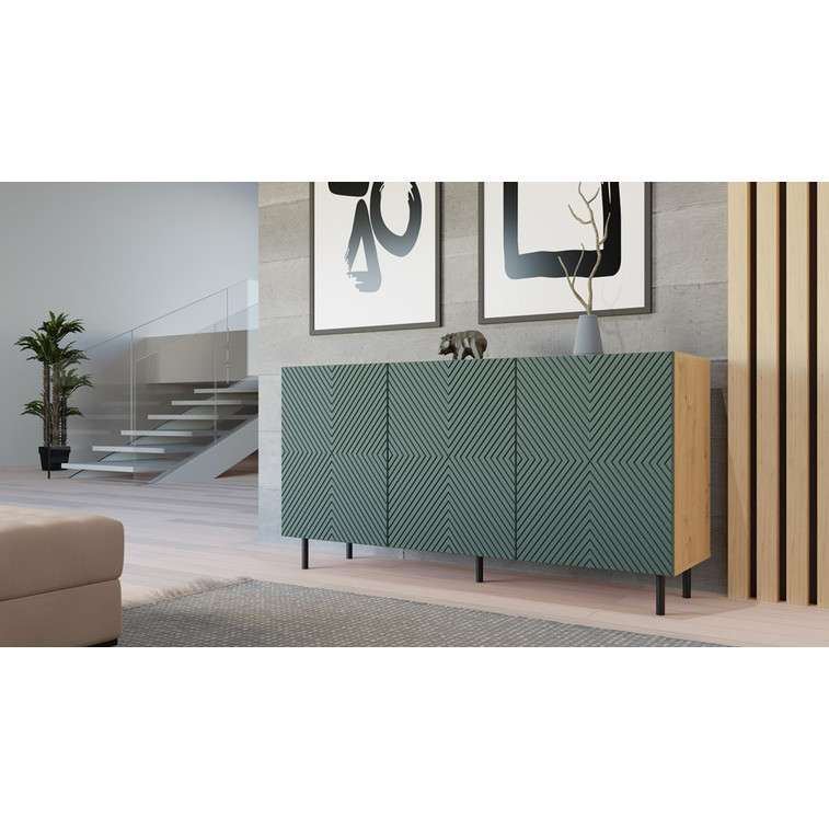 Moderná a štýlová komoda Kama je funkčná a priestranná. Hitom a novinkou sú drážkované čelá dverí, ktoré sú veľmi žiadané.