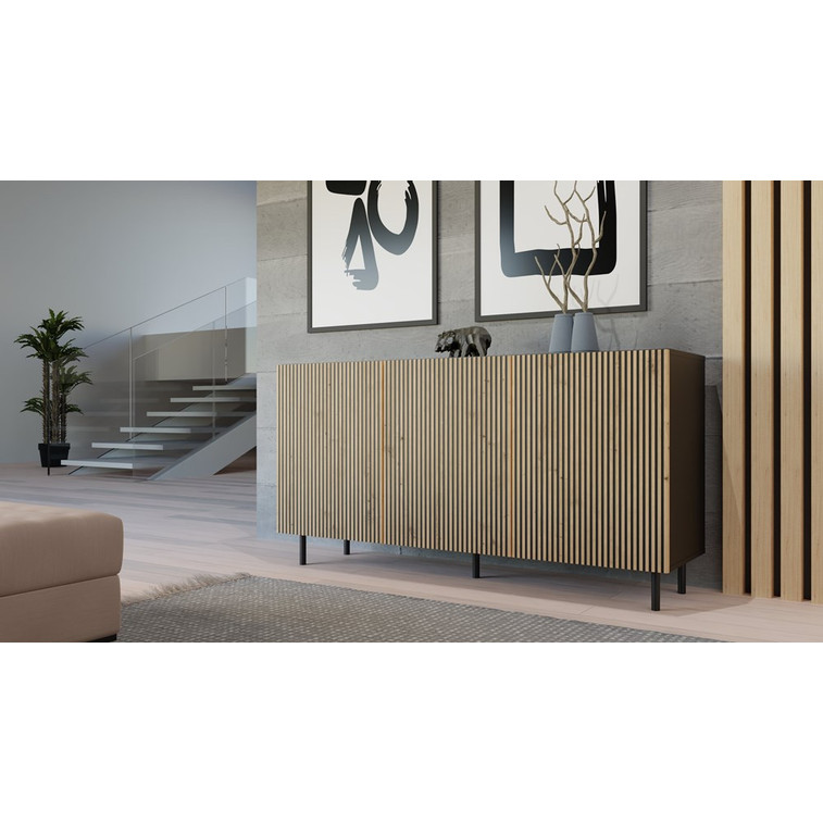 Moderná a štýlová komoda Kama je funkčná a priestranná. Hitom a novinkou sú drážkované čelá dverí, ktoré sú veľmi žiadané.