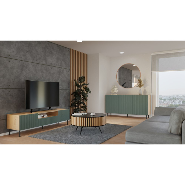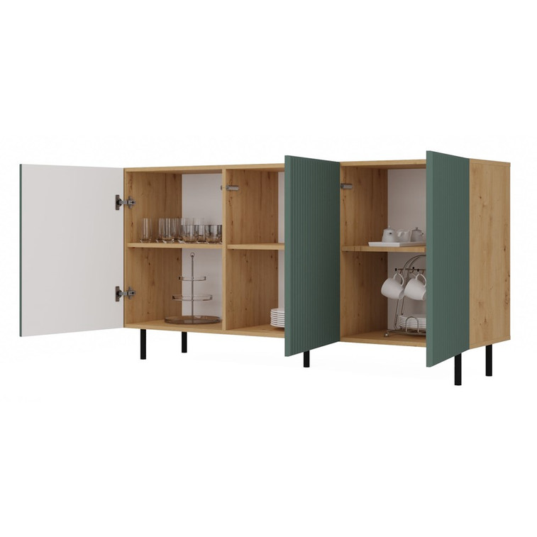 Moderná a štýlová komoda Kama je funkčná a priestranná. Hitom a novinkou sú drážkované čelá dverí, ktoré sú veľmi žiadané.