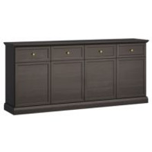 Praktická komoda s štyrmi priestrannými zásuvkami a štyrmi skrinkami. Čiernohnedý alebo biely dekor s hlbokými prírodnými pórmi dreva má rôzne stupne lesku a pôsobí mimoriadne dynamicky a veľmi rozmanito. Kolekcia Lucca vám umožňuje voľne miešať klasický a moderný štýl.