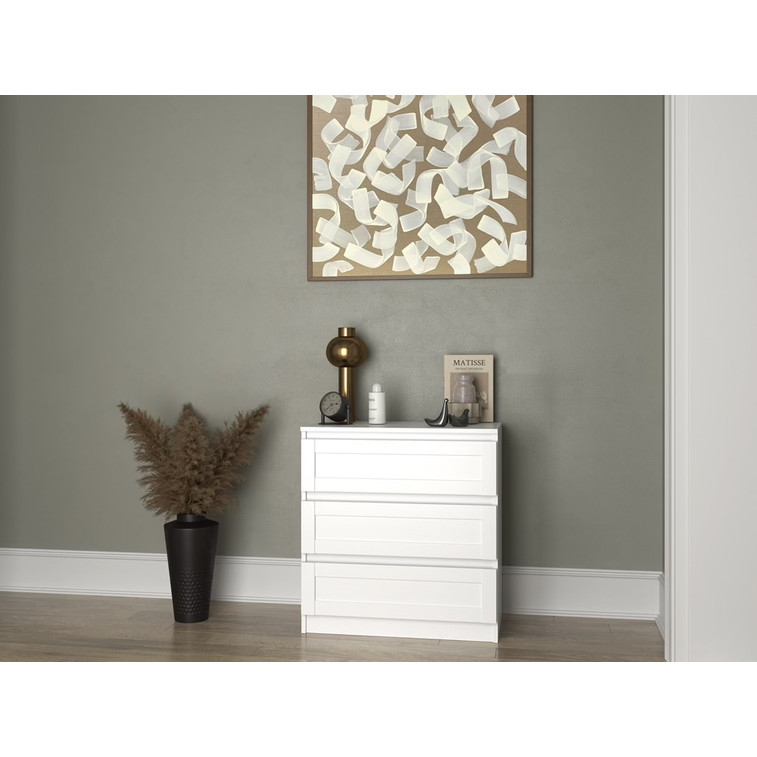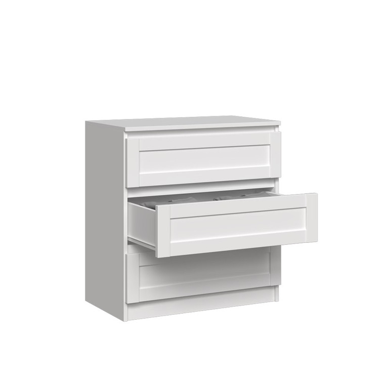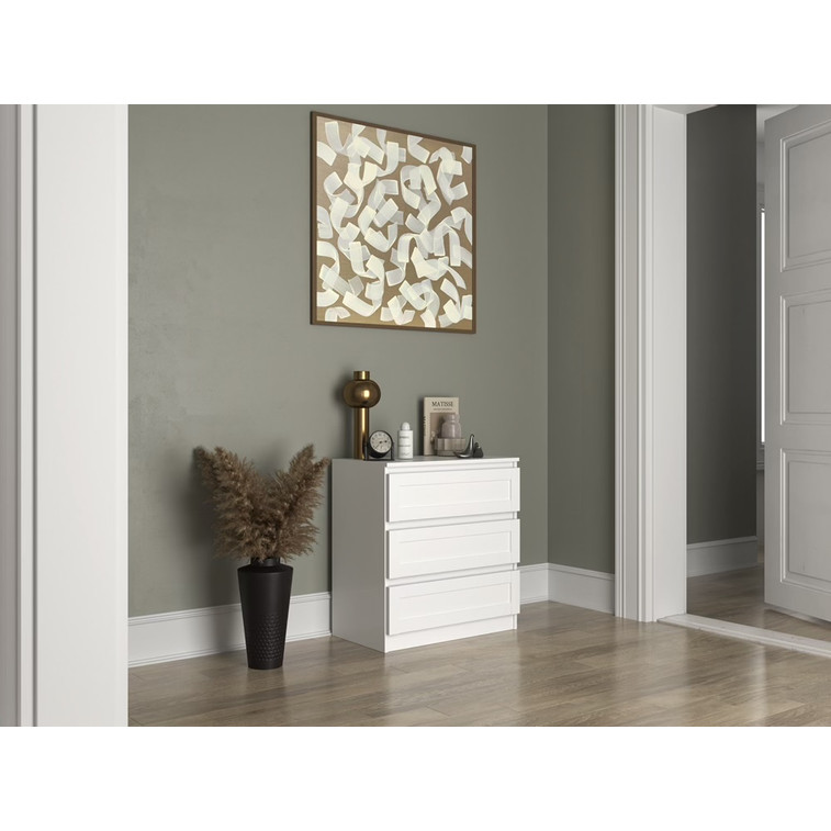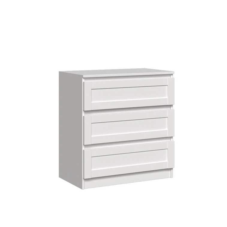 Je vyrobená z pevnej laminovanej dosky, ktorá je odolná proti oderu a poškodeniu. Univerzálny vzhľad splní očakávania každého, kto ocení kombináciu jednoduchosti a elegancie. Bezúchytkové čelá zásuviek zaisťujú pohodlné používanie. Zásuvky sú frézované.