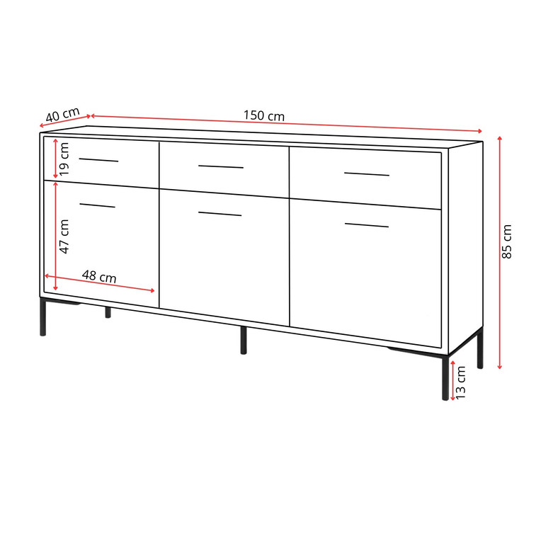 Komoda 3S3D ponúka maximálny úložný priestor a zároveň elegantný doplnok do každého interiéru. Kombinácia troch zásuviek a troch dvierok poskytuje dostatok miesta na prehľadné uloženie oblečenia, dokumentov i ďalších nevyhnutností, ktoré chcete mať vždy po ruke.