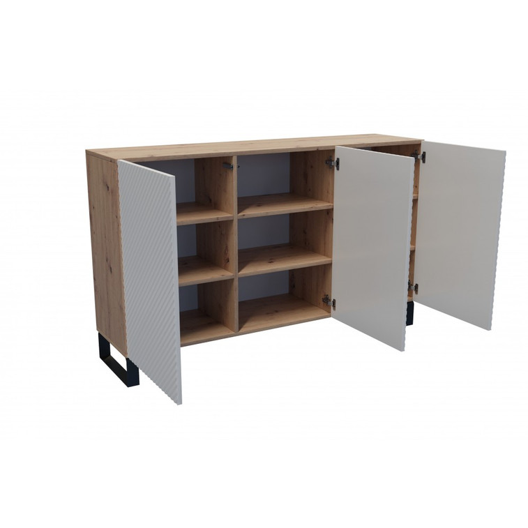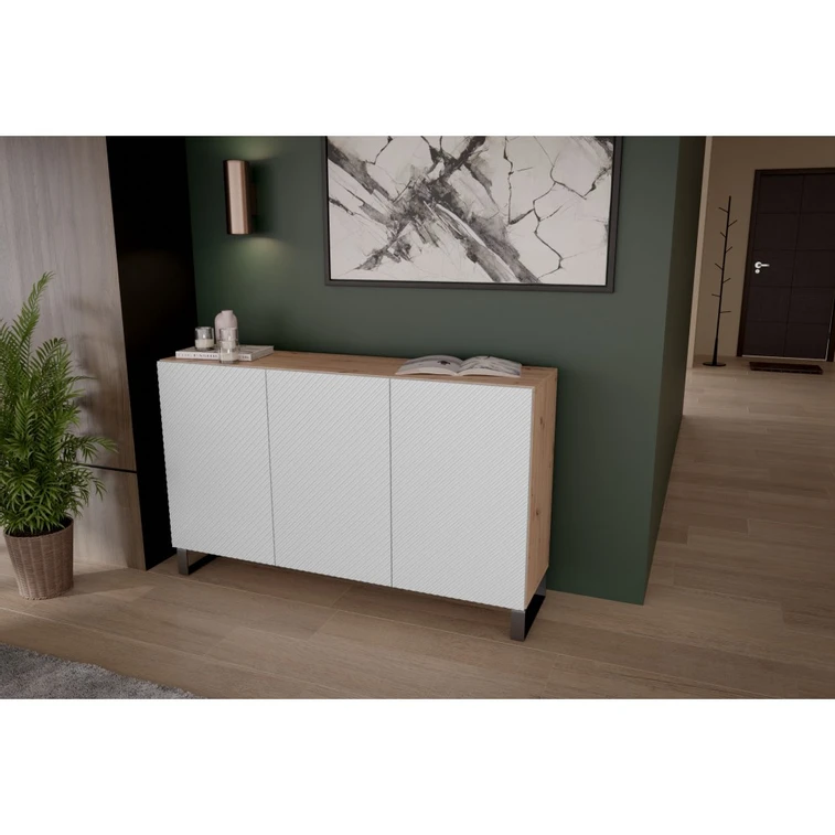 Je vyrobená z pevnej laminovanej dosky, ktorá je odolná proti oderu a poškodeniu. Jej vzhľad splní očakávania každého, kto ocení kombináciu jednoduchosti a elegancie. Bezúchytkové dvierka zaisťujú pohodlné používanie.