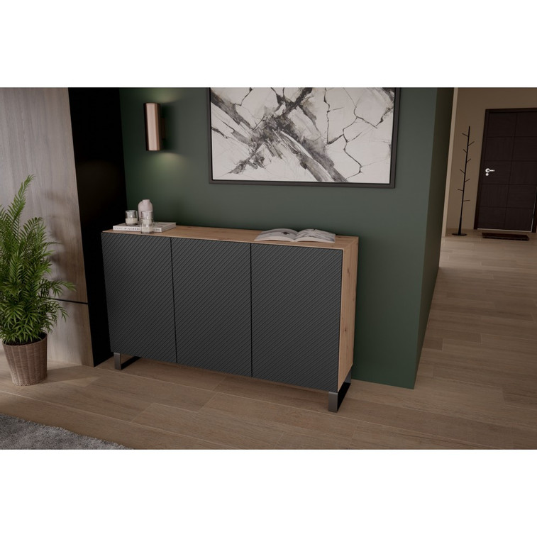 Je vyrobená z pevnej laminovanej dosky, ktorá je odolná proti oderu a poškodeniu. Jej vzhľad splní očakávania každého, kto ocení kombináciu jednoduchosti a elegancie. Bezúchytkové dvierka zaisťujú pohodlné používanie.