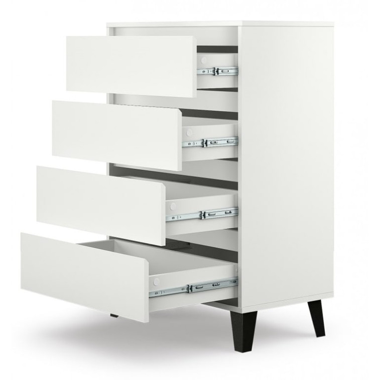 - Priestranné 4 zásuvky na guličkových ložiskách, ideálne na uloženie rôznych predmetov, od oblečenia po doplnky.