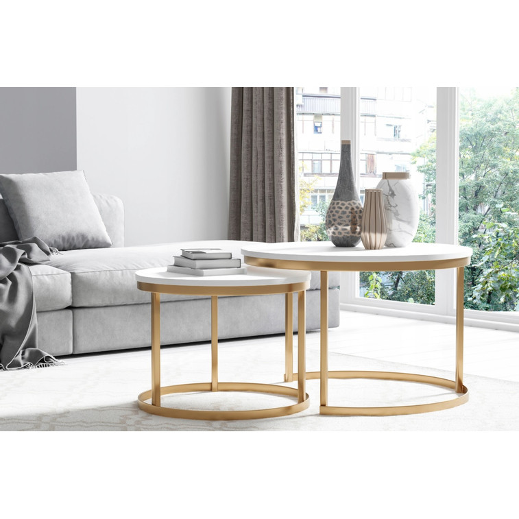 Stolíky sú zhotovené z laminovanej MDF. Nohy sú z práškovo lakovanej ocele.
