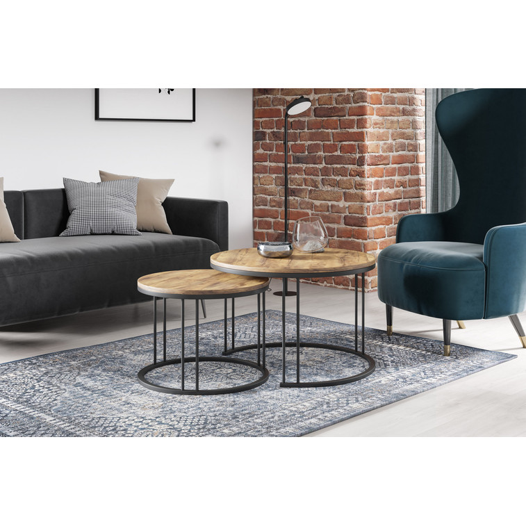 Stolíky sú zhotovené z laminovanej MDF. Nohy sú z práškovo lakovanej ocele v čiernej farbe.