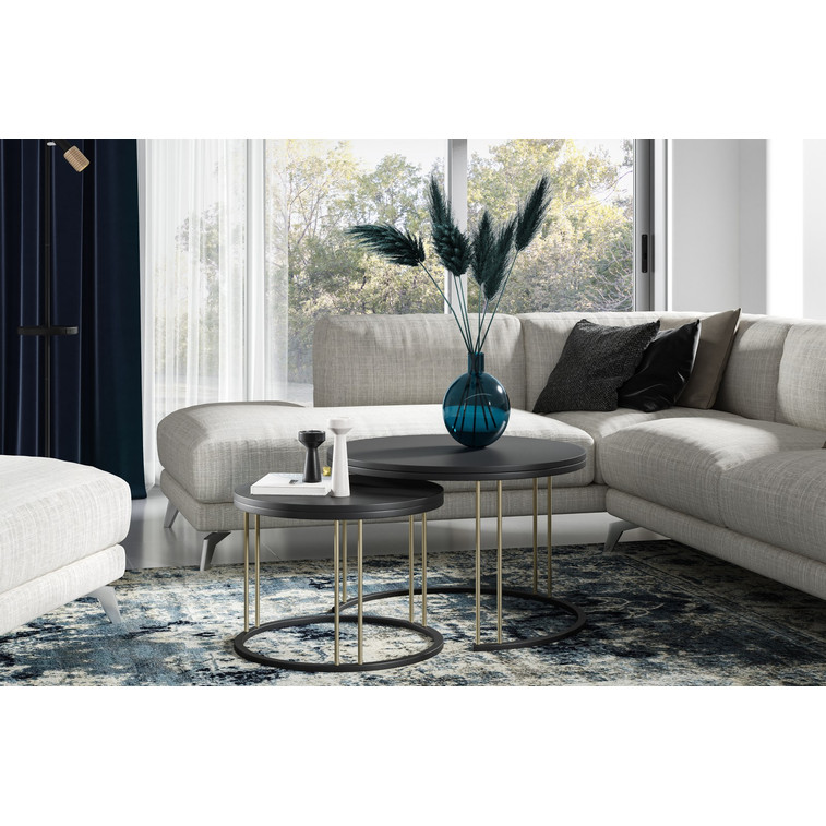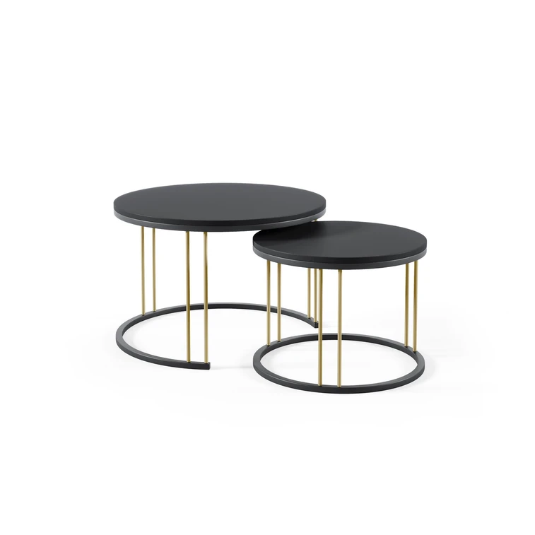 Stolíky sú zhotovené z laminovanej MDF. Nohy sú z práškovo lakovanej ocele v čiernej farbe.