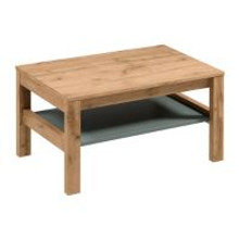 Konferenčný stolík s policou na knihy alebo časopisy. Skvelý doplnok k celej kolekcii Indigo. Prírodné farby teplého dekoru dub Wotan na korpuse nábytku v kombinácii s jednofarebnou béžovou alebo zelenou na výber robia kolekciu prirodzene krásnu.