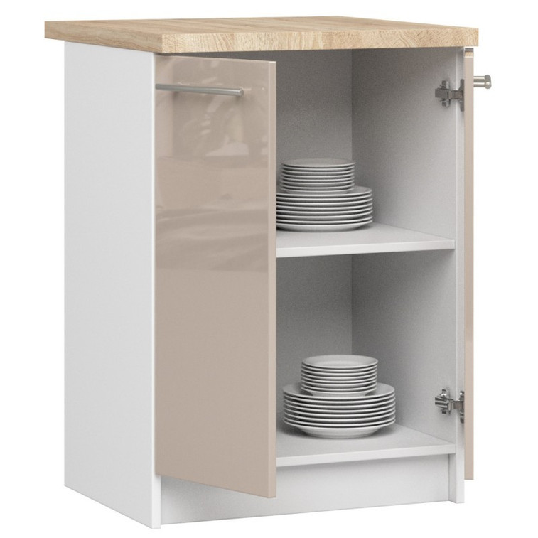 Konyhaszekrény OLIVIA S60 2D - fehér/cappuccino fényes.