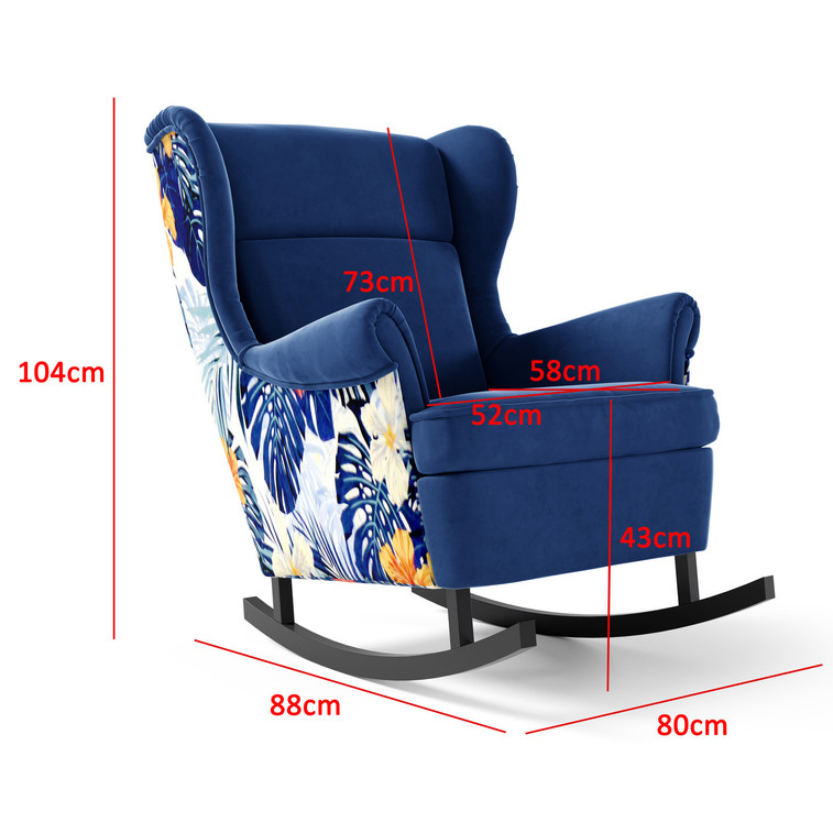 Pohodlné, kompaktné, hojdacie kreslo 195 MORGAN so svetlou bukovou podnožou.