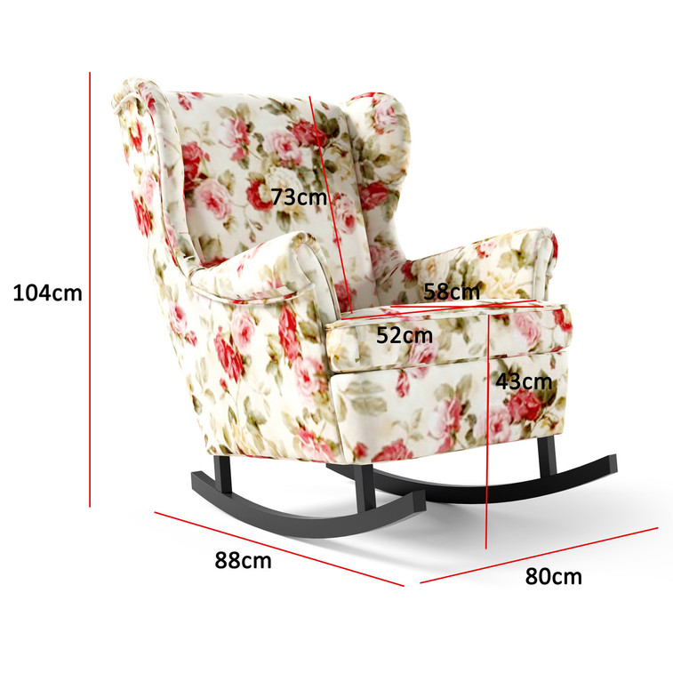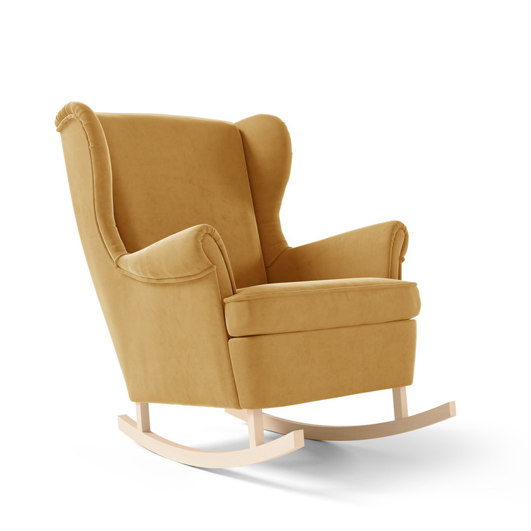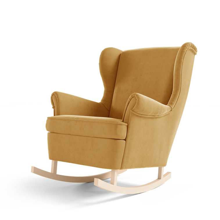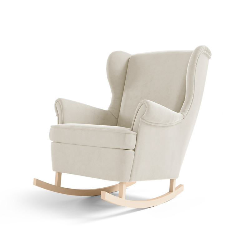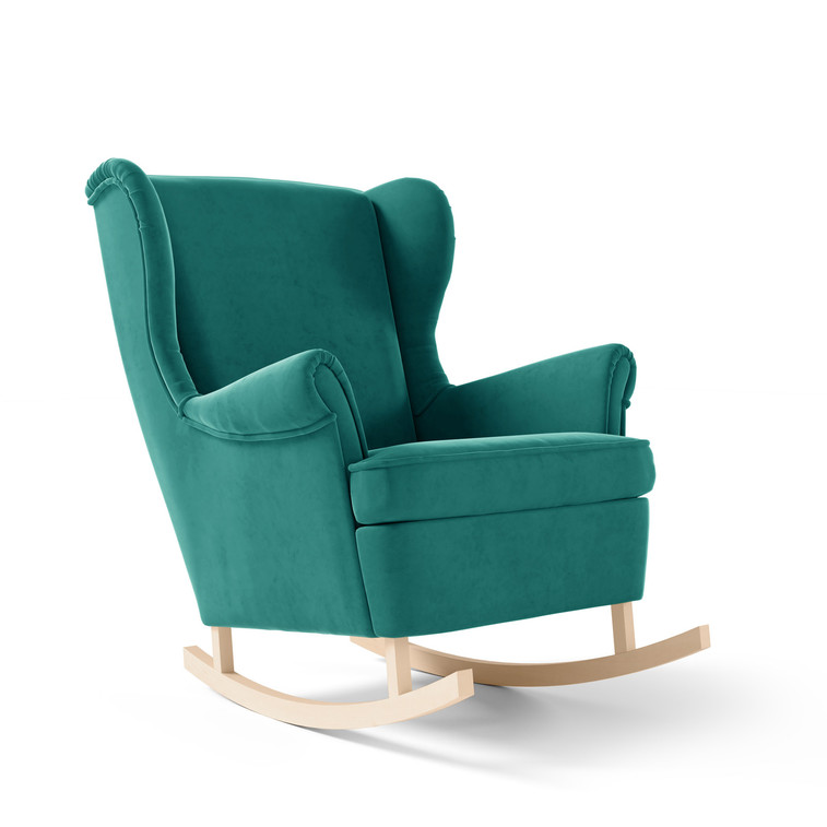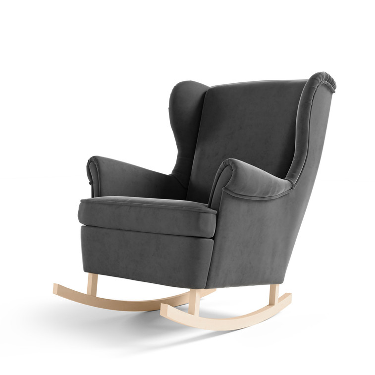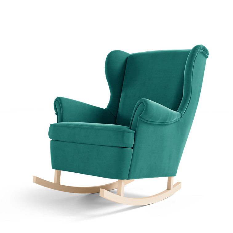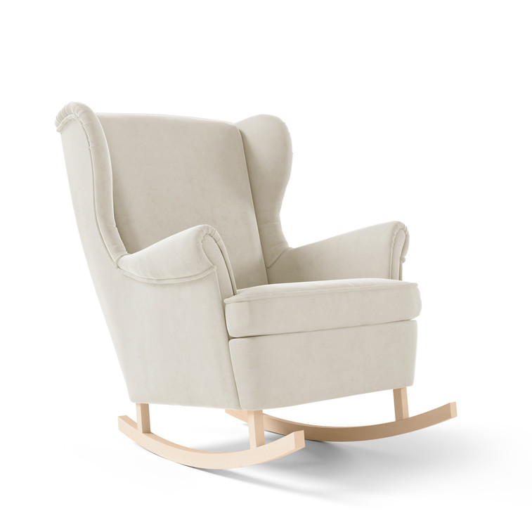 Pohodlné, kompaktné, hojdacie kreslo 196 BROOKE so svetlou bukovou podnožou.