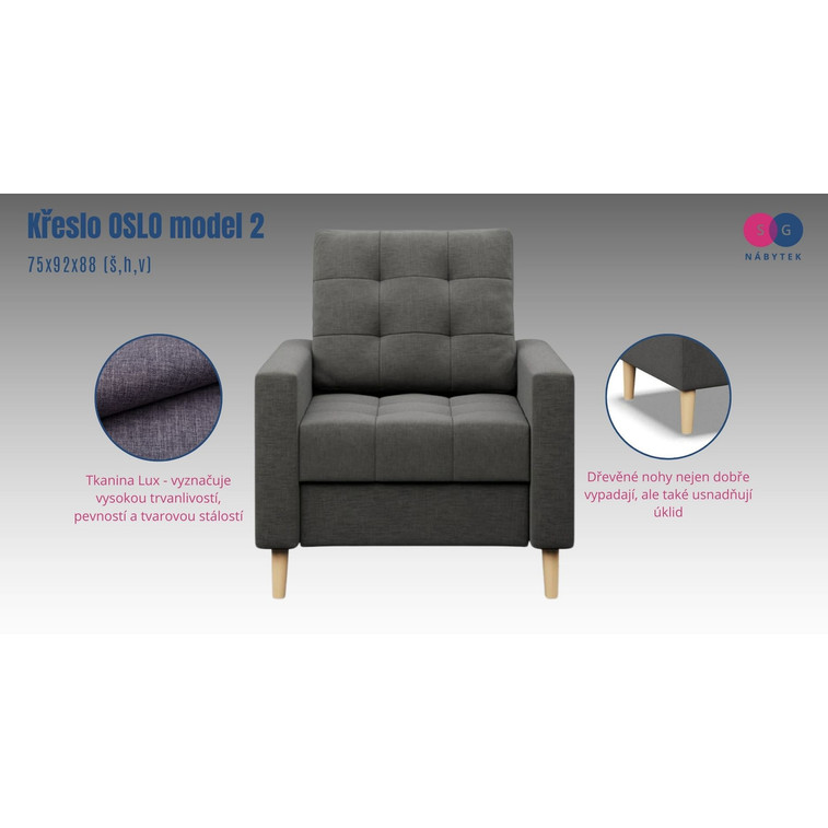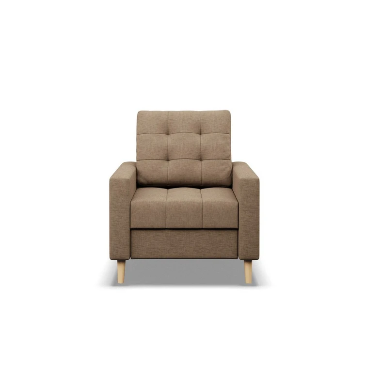 Kvalitné čalúnené kreslo. Pevná konštrukcia z dreva a OSB dosky. Moderný škandinávsky dizajn vhodný do všetkých súčasných interiérov.