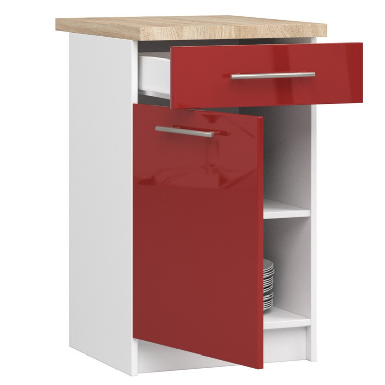 Kuchynská skrinka OLIVIA S50 SZ1 - biela/červený lesk.