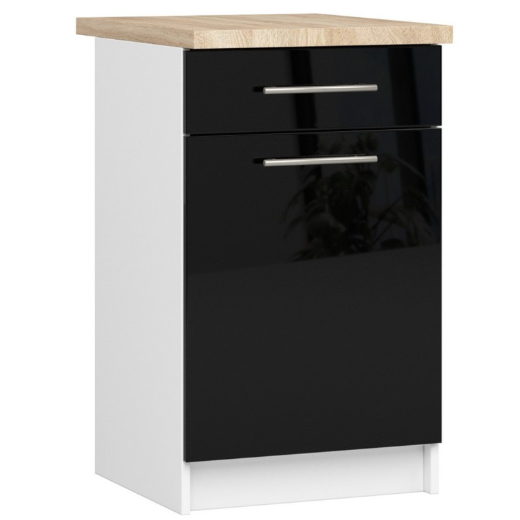Kuchynská skrinka OLIVIA S50 SZ1 - biela/čierny lesk.