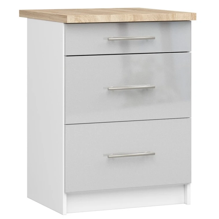 Kuchynská skrinka OLIVIA S60 3SZ - biela/sivý lesk.