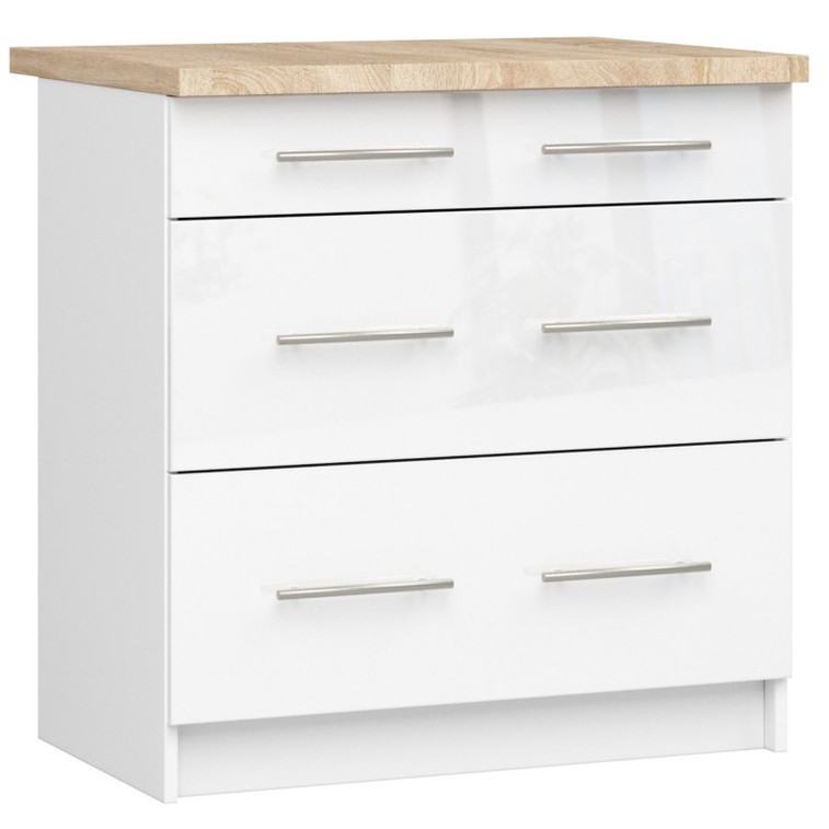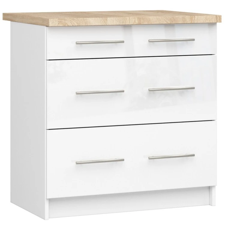 Kuchynská skrinka OLIVIA S80 3SZ - biela/biely lesk.