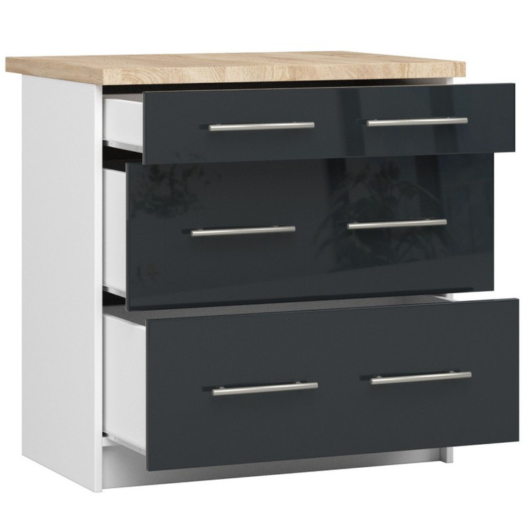 Kuchynská skrinka OLIVIA S80 3SZ - biela/grafit lesk.