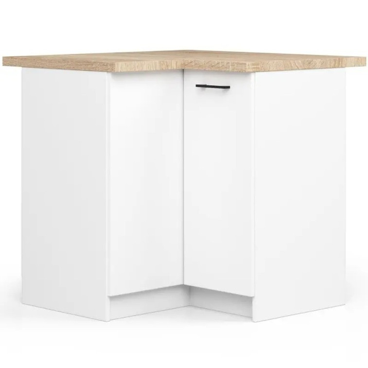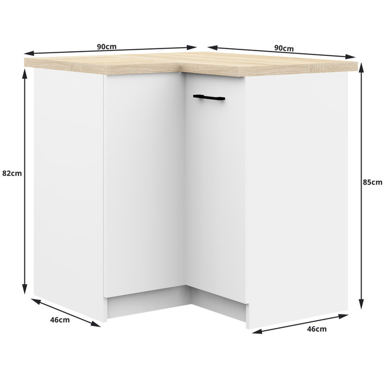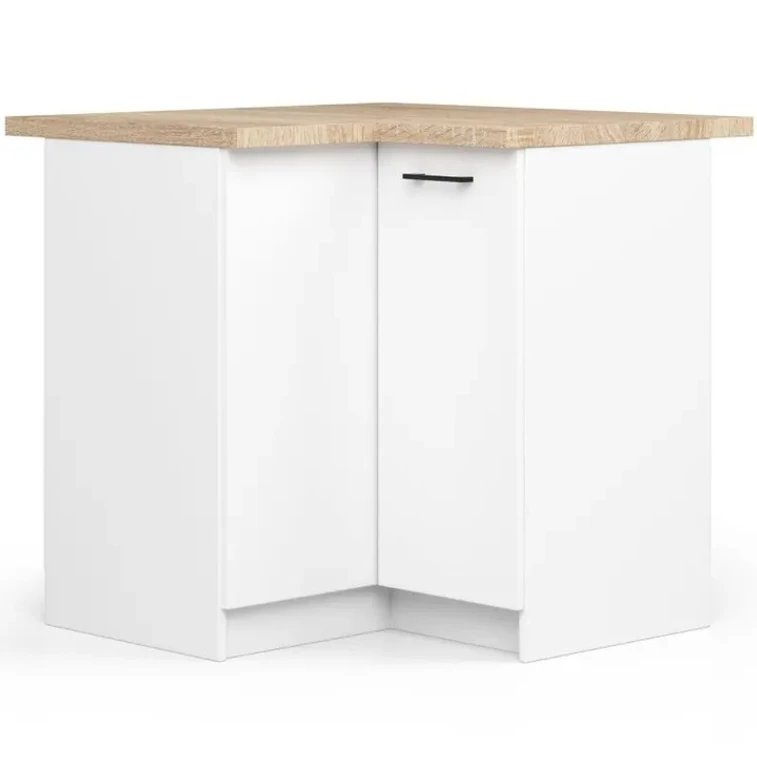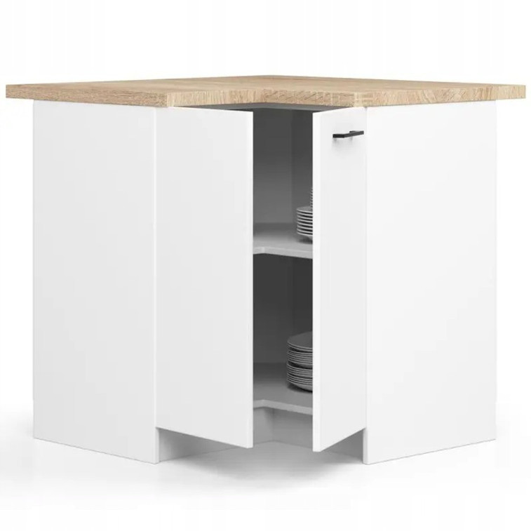 Kuchyňa je srdcom každého domova. Práve tu členovia domácnosti každý deň pripravujú jedlá, oddávajú sa rozhovorom a trávia čas spoločne. Niet divu, že si každý chce zariadiť kuchyňu tak, aby bola funkčná a zároveň príjemná na pohľad. Nábytok z kolekcie Olivia v tom určite pomôže. Predstavujeme jeden z prvkov z tejto modulárnej zostavy - rohovú skrinku S90/90N navrhnutú v módnej bielej farbe, s ktorou dokonale kontrastujú čierne matné úchyty a tvoria tak jedinečný celok. Elegantný kus nábytku umožňuje otváranie dvierok na pravú aj ľavú stranu, vďaka čomu je možné získať voľný prístup do veľkého priestoru, do ktorého môžete umiestniť mnoho vecí potrebných v každej kuchyni, čistiace prostriedky alebo potravinárske výrobky.