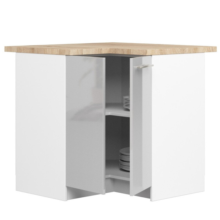Každý si chce zariadiť kuchyňu tak, aby bola funkčná a zároveň príjemná na pohľad. K tomu určite pomôže nábytok z kolekcie Olivia. Predstavujeme jeden z prvkov z tejto modulárnej zostavy – rohovú skriňu S90/90. Skrinka umožňuje otváranie dvierok doprava aj doľava a umožňuje ľahký prístup do veľkého priestoru, do ktorého môžete umiestniť mnoho vecí potrebných v každej kuchyni, čistiace prostriedky a potravinárske produkty.