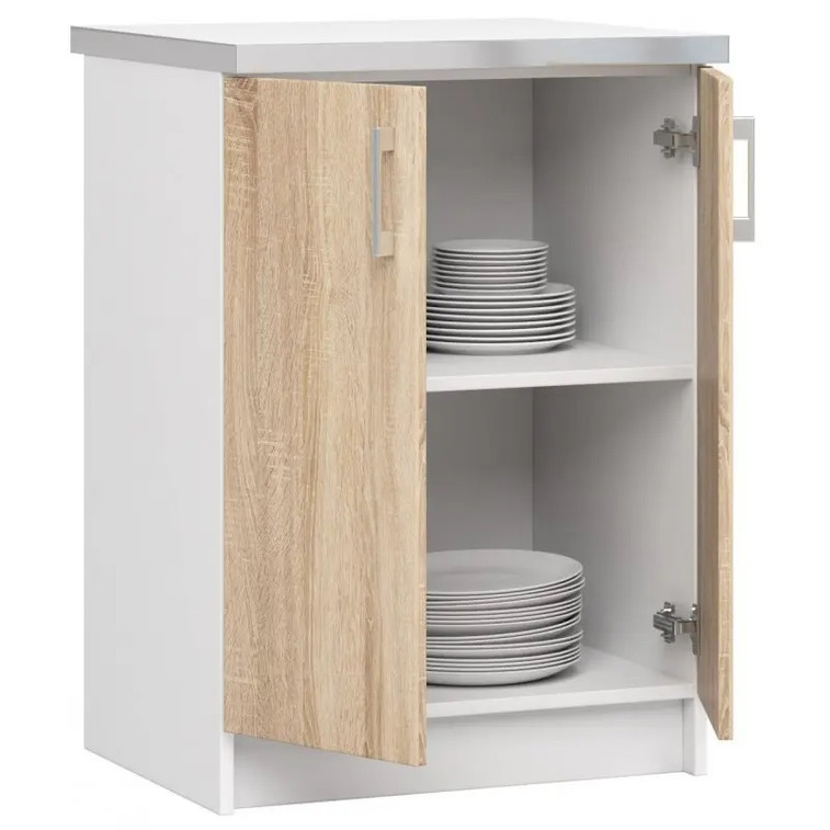 Nábytok je vyrobený z oteruvzdornej laminovanej dosky a kombinuje dve farby - bielu a dub sonoma. Ako prezentovaná stojacia skriňa, tak aj ďalšie prvky vybavenia z kolekcie LIMA určite splnia vaše očakávania.