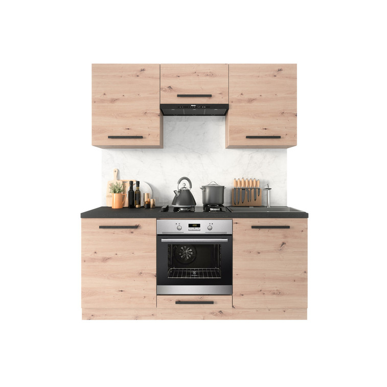 Moderná kuchynská zostava LANGEN 1,8 m v odtieni dub artisan. Hotová zostava, ktorá vám pomôže zariadiť malý kuchynský priestor. V kolekcii Langen nájdete skrinky, vďaka ktorým zostavu rozšírite.
