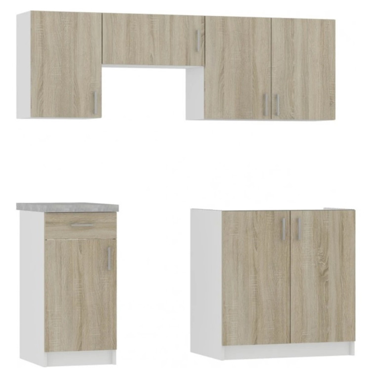 V cene kuchyne sú skrinky vyobrazené na fotografii v celkovej šírke 180 cm v dekóre Dub Sonoma.