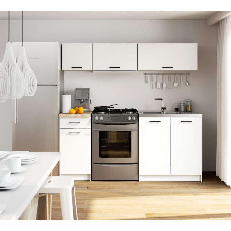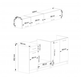 Zostava kuchynského nábytku je vyrobená z laminovanej dosky hrúbky 16 mm. Celok sa vyznačuje pevnou konštrukciou, ktorá je zárukou životnosti a odolnosti proti poškodeniu prezentovanej zostavy. Prvky v ňom obsiahnuté je možné medzi sebou ľubovoľne kombinovať a personalizovať tak nábytok s prihliadnutím na individuálne potreby.
