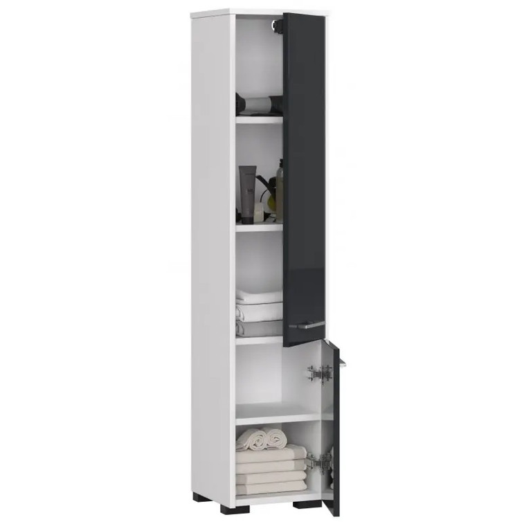 Praktická kúpeľňová skrinka je skvelým riešením do každej kúpeľne. Bude sa hodiť predovšetkým v malých miestnostiach, kde vám umožní uskladniť kozmetiku, čistiace prostriedky alebo kúpeľňový textil. Vysoká estetika nábytku bola spojená so životnosťou a vysokou odolnosťou proti poškodeniu. Kúpeľňová polička Fin je vybavená dvoma uzamykateľnými skrinkami.