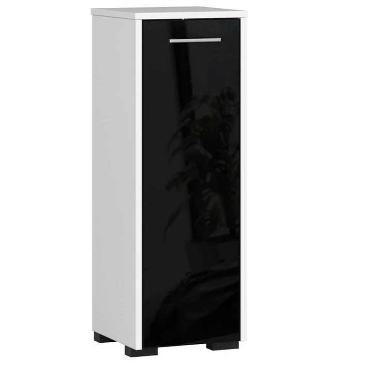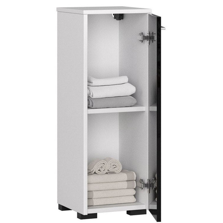 Kúpeľňová skrinka je vo svojej jednoduchosti veľmi praktický a elegantný kus nábytku. Vďaka malým rozmerom nájde uplatnenie aj v malých kúpeľniach. Do priestranných políc skrine sa zmestia uteráky, čistiace prostriedky alebo náhradné mydlá či kozmetika. Skrinka sa dá využiť aj pre kúpeľňovú váhu, zariadenie na úpravu vlasov alebo masážny prístroj na nohy. Horná časť skrinky, umiestnená v pohodlnej výške, poslúži na každodennú kozmetiku a parfumy alebo dekoratívne zrkadlo na líčenie. Skriňa je vyrobená z laminovanej dosky, ktorá je odolná proti vlhkosti a oderu.