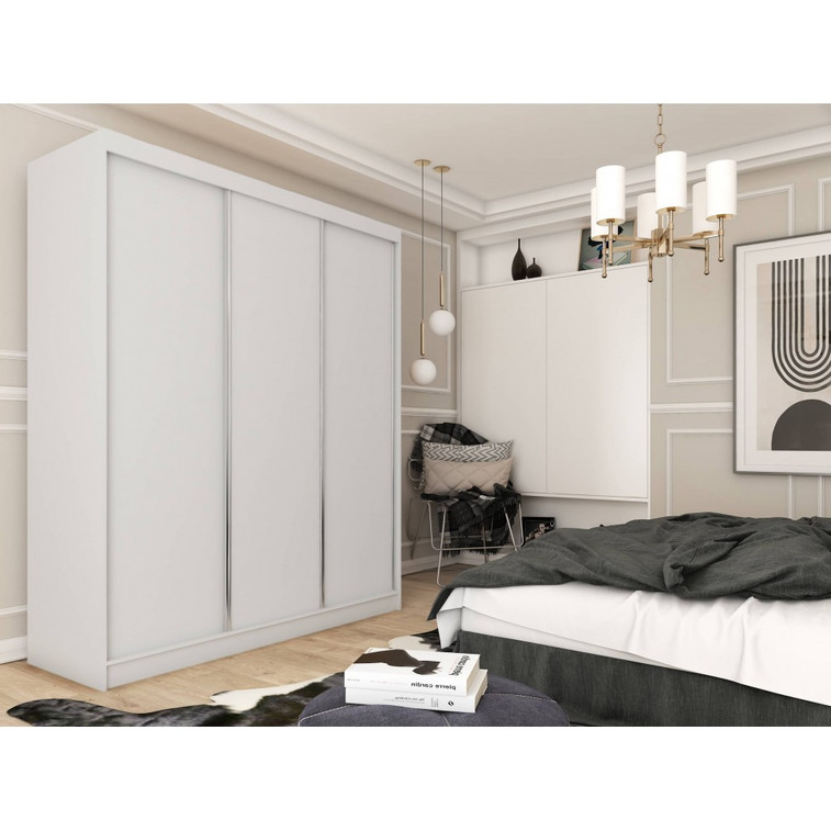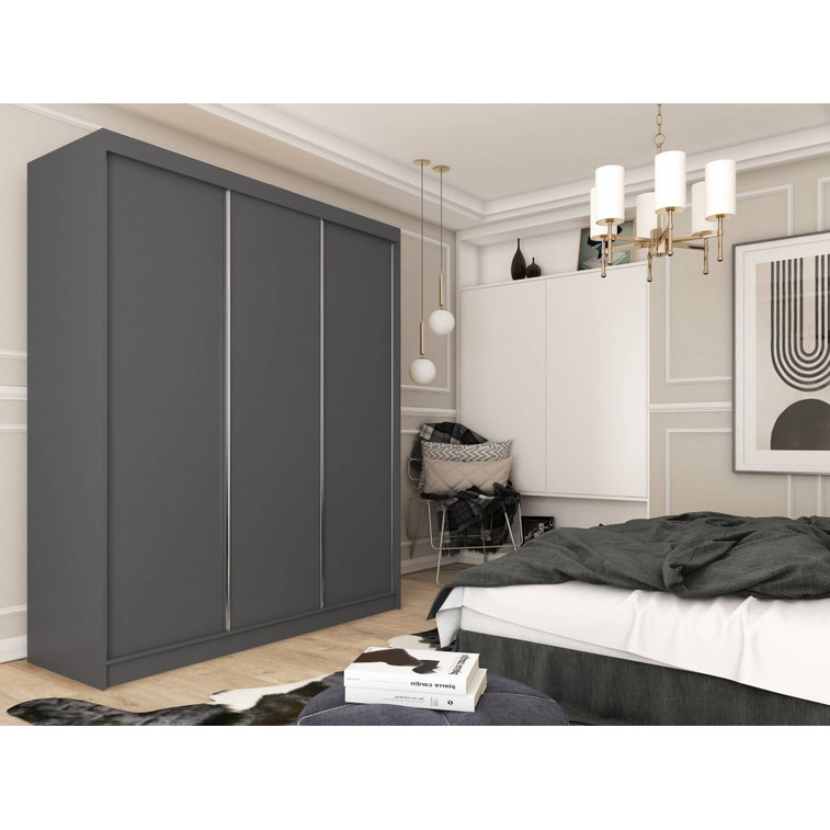 Priestranná šatníková skriňa je vyrobená v modernom dizajne a ponúka veľké množstvo praktického úložného priestoru.