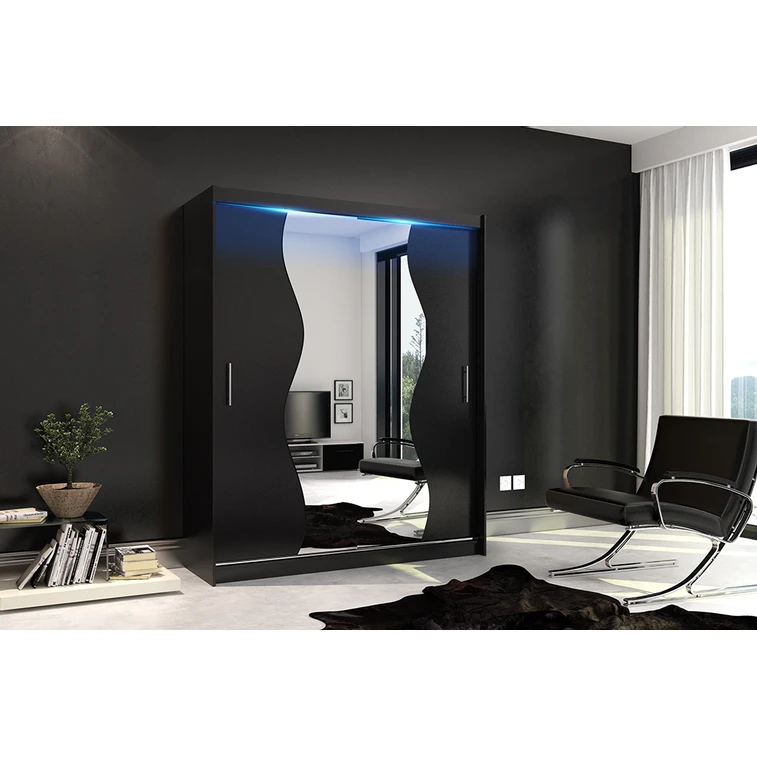 Kvalitná šatníková skriňa KOLA 10 čierna 180 cm Bez LED osvetlenia