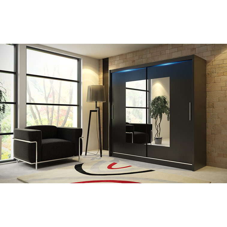 Kvalitná šatníková skriňa KOLA 6 čierna 180 cm Bez LED osvetlenia