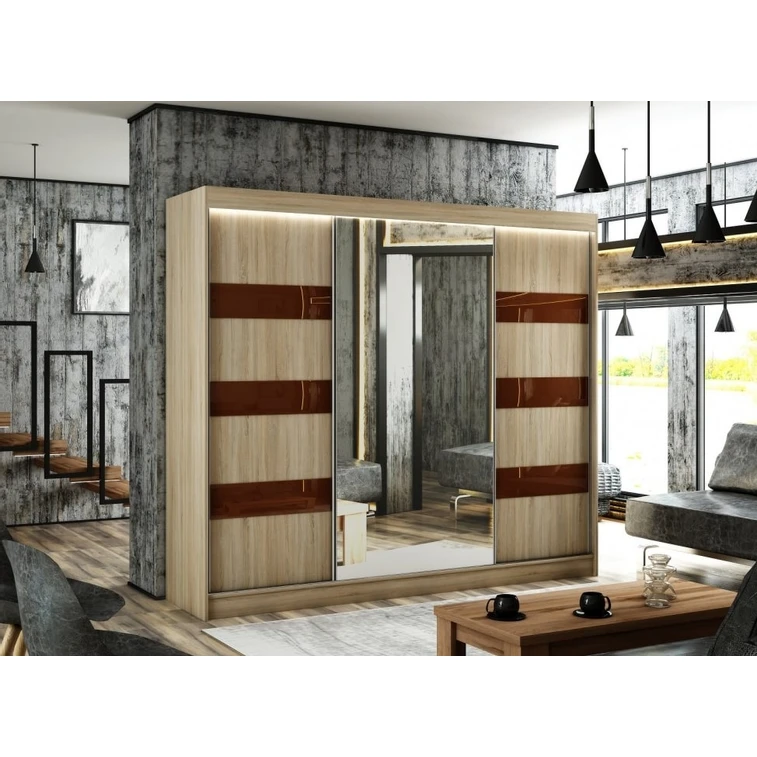 Kvalitná Šatníková Skriňa Lotse 250 cm Dub sonoma Čokoláda