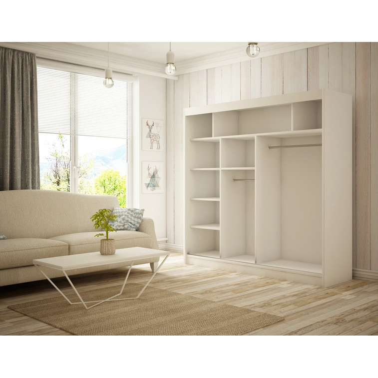 Priestranná šatníková skriňa Luke je vyrobená v modernom dizajne a ponúka veľké množstvo praktického úložného priestoru (viď obrázok).