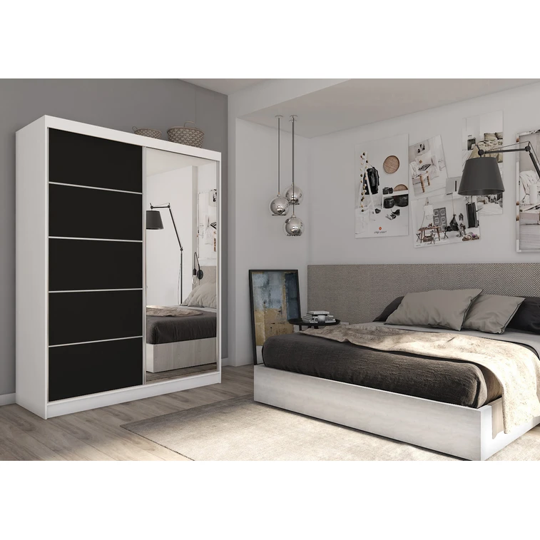 Kvalitná Šatníková Skriňa Makira 160 cm Biela - čierna