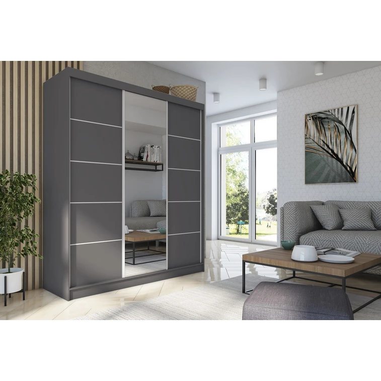 Kvalitná Šatníková Skriňa Makira 180 cm Sivá