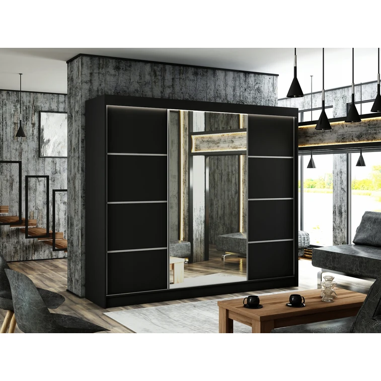 Kvalitná Šatníková Skriňa Pako 250 cm Čierny mat