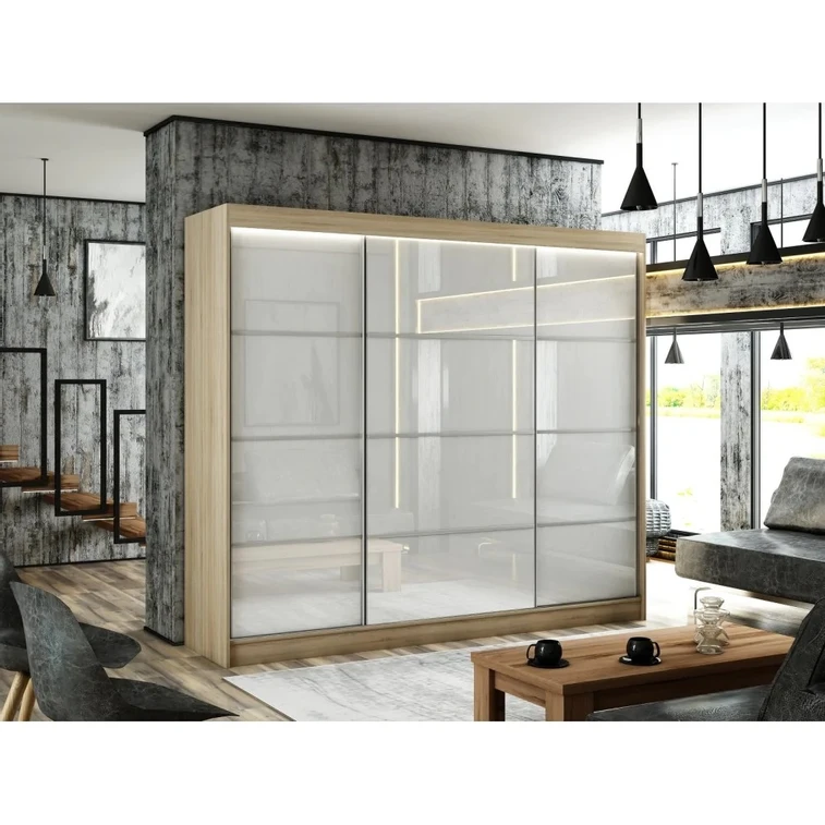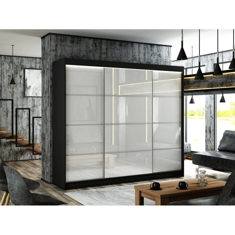 Priestranná šatníková skriňa Peak III je vyrobená v modernom dizajne a ponúka veľké množstvo praktického úložného priestoru.