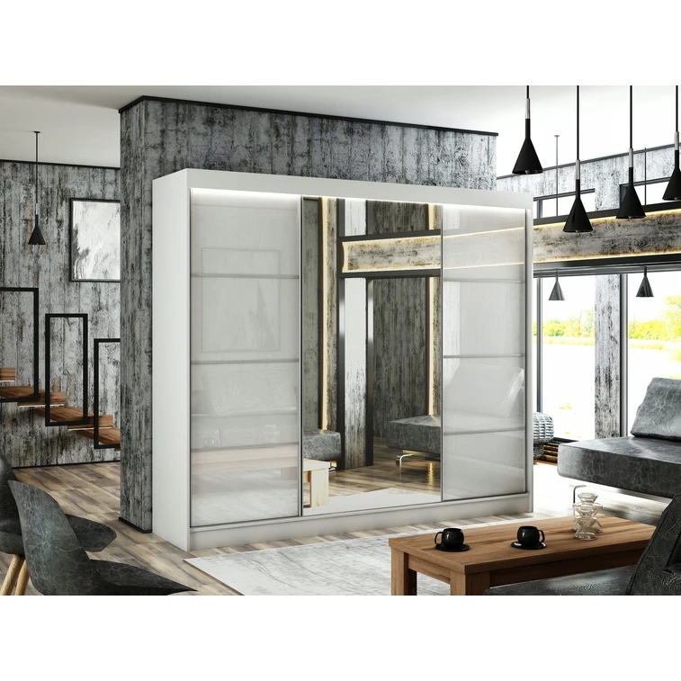 Posuvná šatníková skriňa je vyrobená v modernom dizajne a ponúka veľké množstvo praktického úložného priestoru.