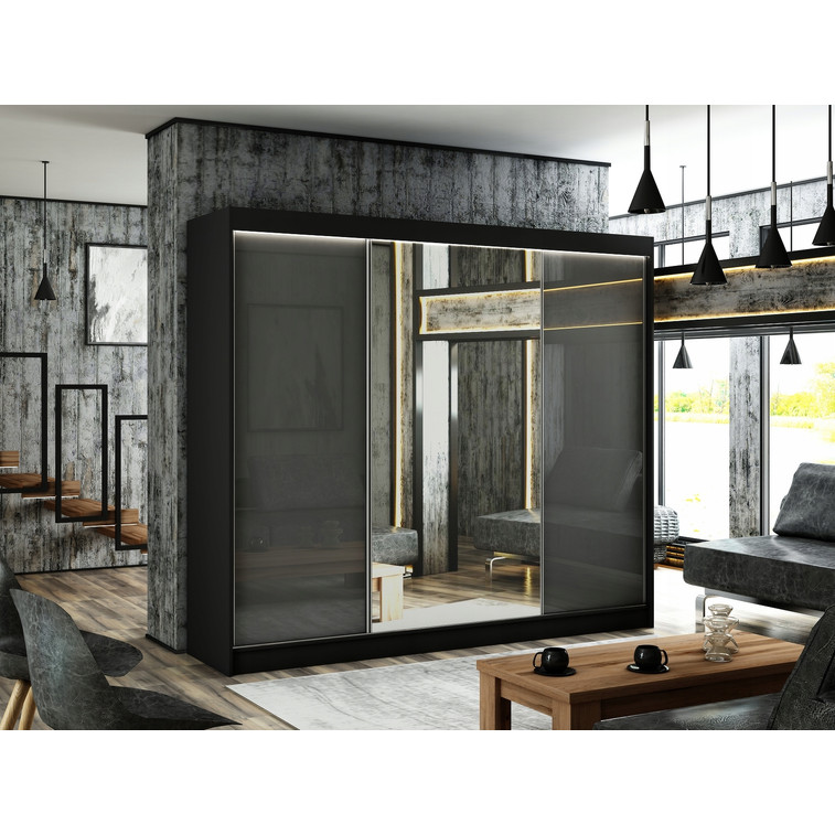 Posuvná šatníková skriňa je vyrobená v modernom dizajne a ponúka veľké množstvo praktického úložného priestoru.