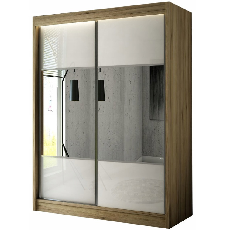 Priestranná šatníková skriňa Rico je vyrobená v modernom dizajne a ponúka veľké množstvo praktického úložného priestoru (viď obrázok).