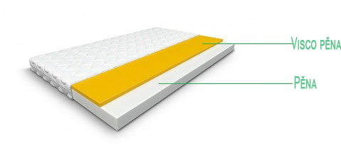 Pohodlný matrac je vyrobený z viscoelastickej pamäťovej peny v kombinácii so vzdušnou a veľmi pružnú PUR polyuretánovou penou. Použitá PUR pena je pevná a trvanlivá. Matrac vďaka VISCO pene zlepšuje krvný obeh, veľmi dobre reaguje na teplo a tlak - preto sa dokáže optimálne prispôsobiť krivkám vášho tela. Tento matrac vyniká tiež výraznou priedušnosťou a tvarovou stálosťou.