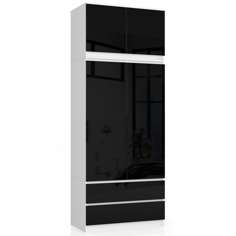 Nadstavba na šatníkovú skriňu S90 so zásuvkami je perfektným riešením pre ľudí, ktorí chcú zvýšiť funkčnosť existujúceho kusu nábytku. Šatníková skriňa so zásuvkami, priestorom pre ramienka a police je už pomerne priestranná. V kombinácii s nadstavbou – vytvorením ďalšieho priestoru – sa však stane ešte funkčnejšou. V nadstavbe umiestnenej na skrini môžete uložiť menej často používané oblečenie, posteľnú bielizeň alebo do nej po zimnej sezóne presťahovať teplé oblečenie a získať tak priestor pre ľahšie oblečenie. Nadstavec skrine je vyrobený z odolnej a oderuvzdornej laminovanej dosky. Okraje nástavca sú starostlivo zakončené odolnou ABS dyhou. Šatníková skriňa s nadstavbou vyzerá veľmi efektne a môže stáť nielen v spálni alebo na chodbe, ale aj na reprezentatívnejšom mieste domu, ktorým je obývacia izba. Tento kus nábytku bude dobre fungovať v bytoch s malou plochou, kde je veľmi dôležité racionálne využitie priestoru.