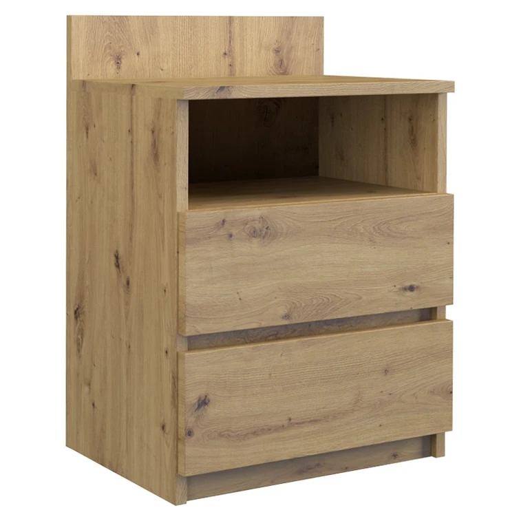 Nočný stolík M-1. Moderný vzhľad hodiaci sa do súčasných interiérov. Kvalitné spracovanie, vyrobené z laminátu 16 mm. Dve praktické zásuvky a polička.. Dodávaný v rozloženom stave s montážnou sadou a návodom.